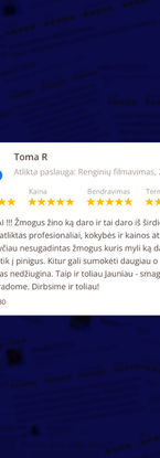 RENGINIŲ FILMAVIMAS BTS (behind the scenes) ir pačių renginių videografija (aftermovies). Galimi formatai - vertikalus (reels), horizontalus (įprastas). Trukmė - iki 60 sek., kaina - nuo 280 EUR*.